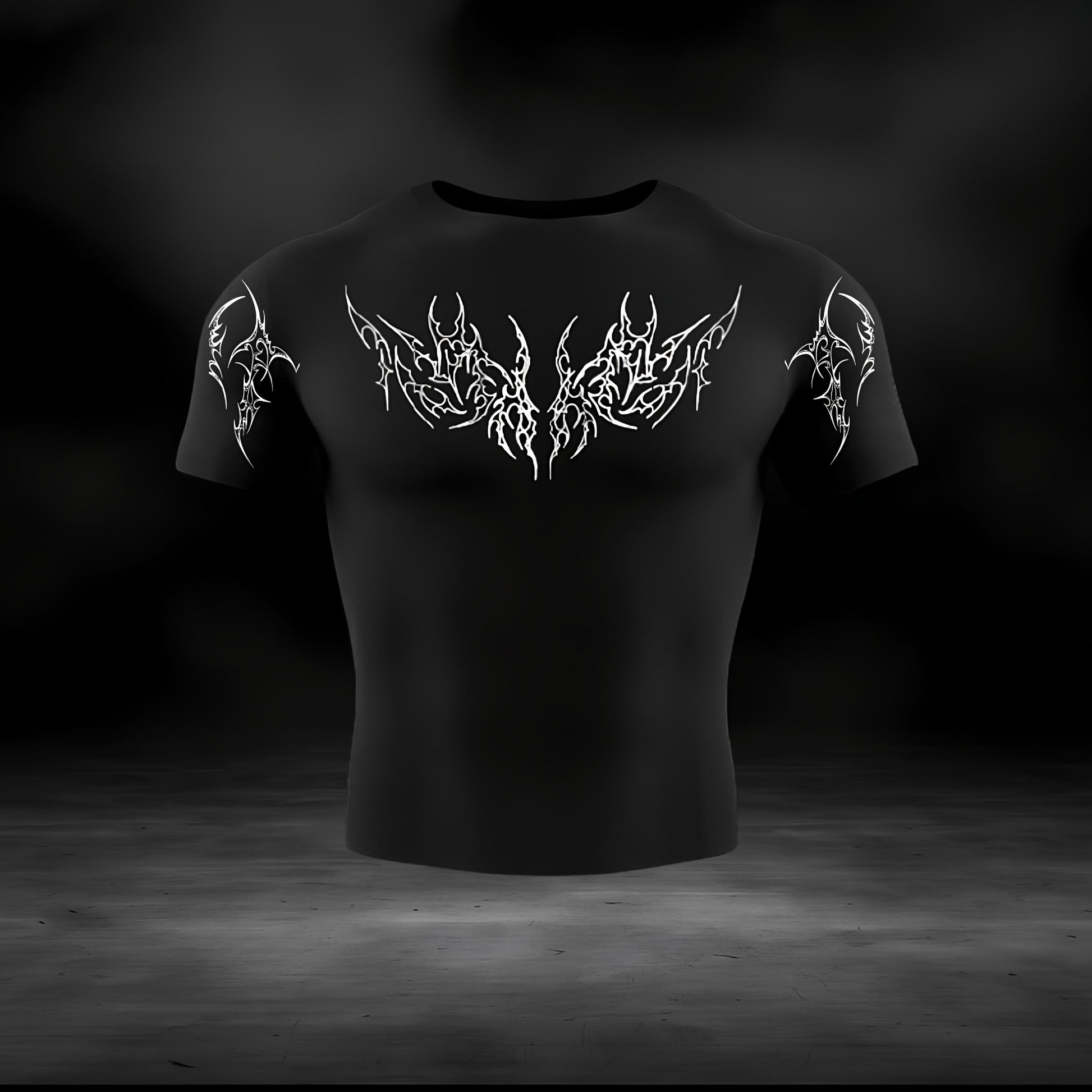 RAGESKINN HALF SLEEVE COMPRESSION TEE Experience athletic performance engineered into every fiber. This compression tee delivers targeted muscle support that feels like a natural extension of your body, enhancing stability during intense training sessions. The half-sleeve design balances coverage with mobility, allowing unrestricted arm movement while maintaining compression where it matters most. Moisture-wicking technology keeps you dry and focused, whether you're pushing through cardio or strength work. Built for athletes who demand precision in their gear—compression that works as hard as you do.